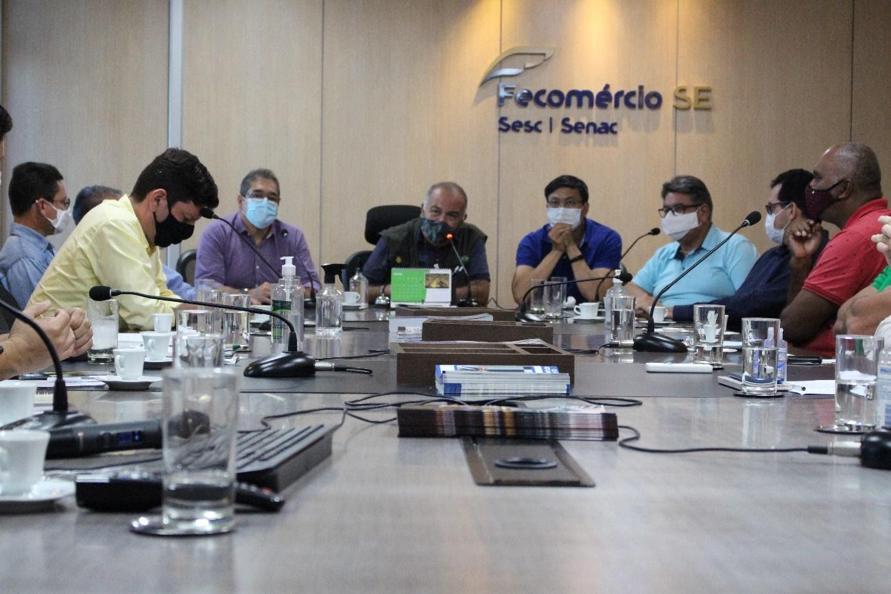 participaram de uma reunião na sede da Fecomércio, que contou com a presença de