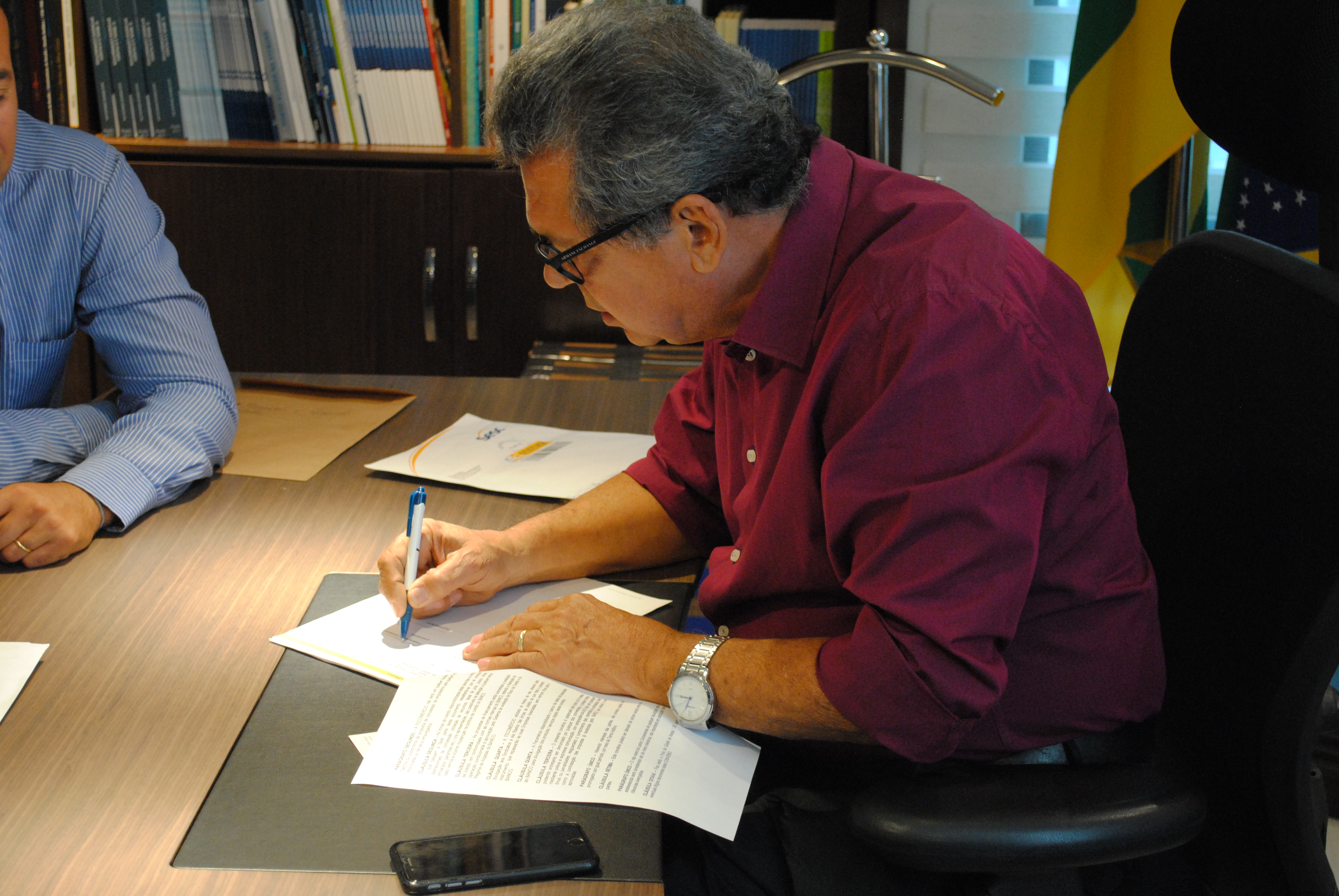 Os diretores da Fecomércio Abel Gomes e Fernando Moraes assinaram o termo de celebração do convênio que vai ajudar os empresários sergipanos a melhorar a fluidez de seus negócios, fortalecendo a relação do banco com as empresas e garantindo a melhoria do ambiente de transações do comércio sergipano.