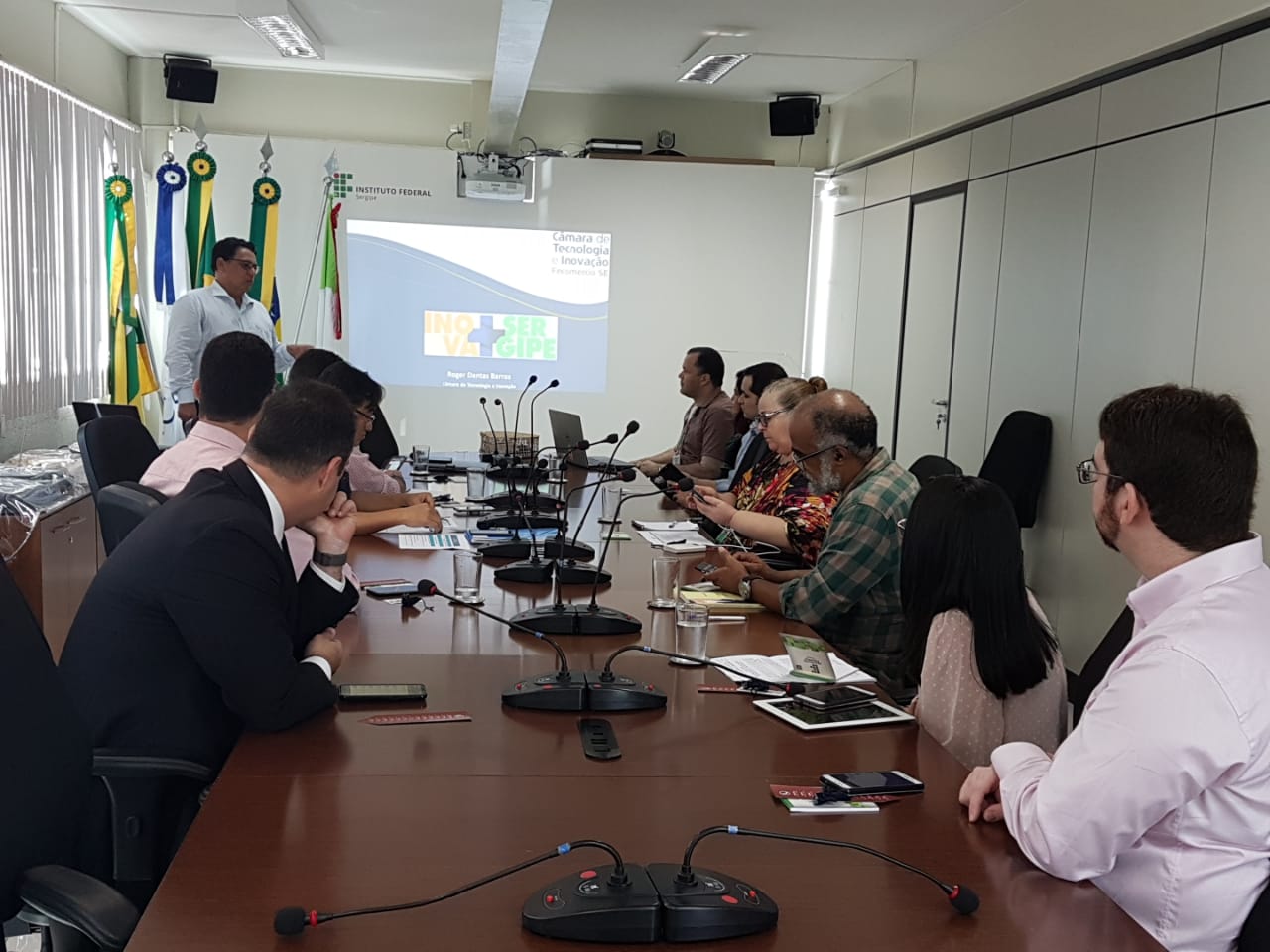 O Inova + Sergipe, desenvolvido pela Câmara Empresarial de Tecnologia e Inovação da Fecomércio, realizou sua nona reunião na manhã desta quarta-feira, 22 de maio, com os agentes participantes do projeto. A reunião aconteceu no prédio da reitoria do Instituto Federal de Sergipe (IFS), no bairro Jardins, em Aracaju. Na pauta, a apresentação da consolidação do planejamento estratégico do Inova +, novidades sobre o andamento do projeto Centelha e previsão para o Tecnova II, e definição de novas ações do grupo. O objetivo do Inova + é transformar a realidade econômica de Sergipe até 2030, aumentando a competitividade no estado, gerando emprego e renda para a população por meio do desenvolvimento tecnológico.