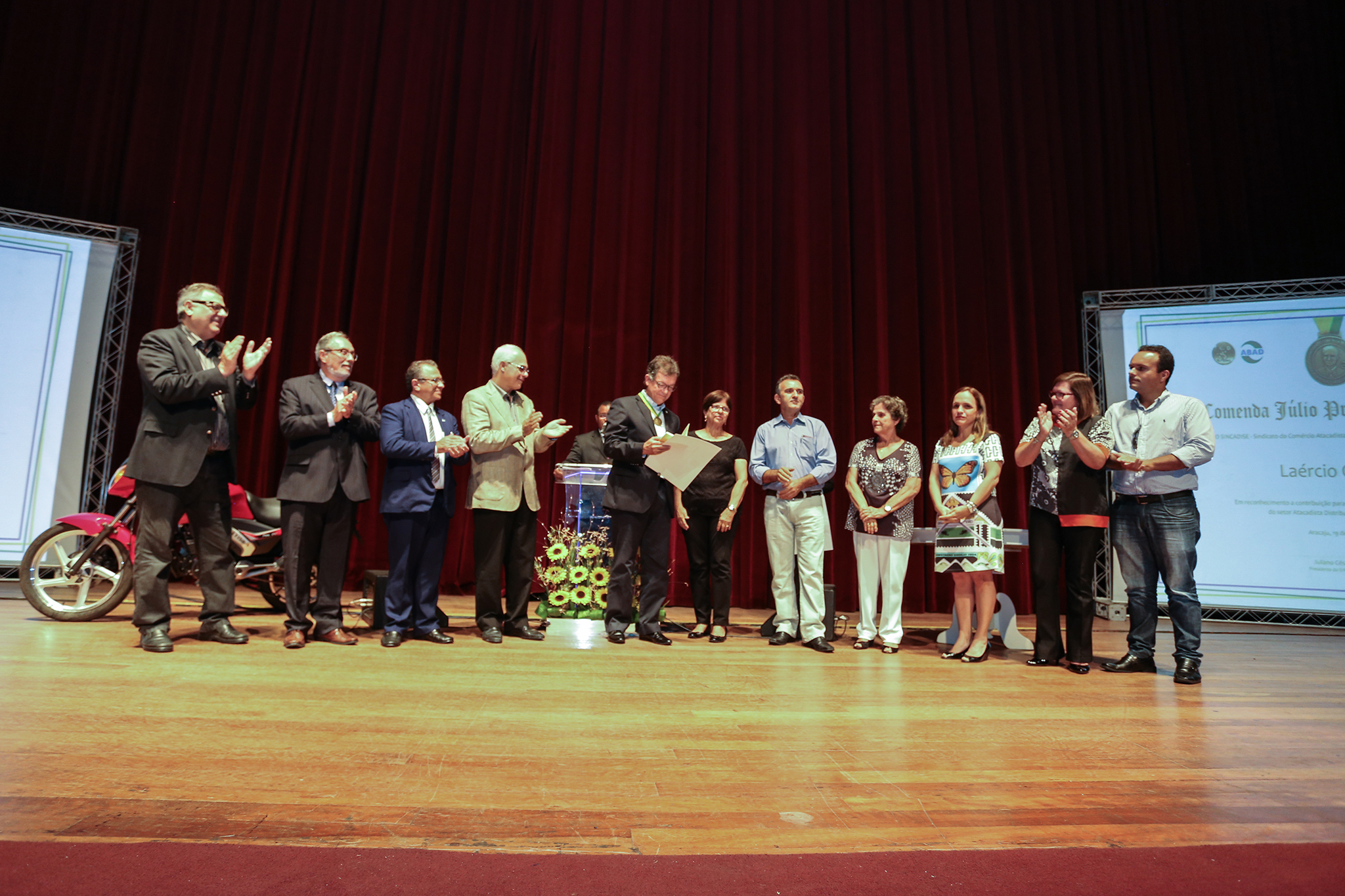 “Fico muito orgulhoso de receber essa comenda com a imagem de Júlio Prado Vasconcelos. Estampar essa medalha no peito me faz ainda mais inspirado para continuar trabalhando na busca pelo desenvolvimento da economia sergipana, devido ao exemplo de seu trabalho, dedicação, coragem de se dedicar ao trabalho desde os oito anos de idade e fazendo seu nome entrar para a história do estado de Sergipe, como um dos grandes nomes do setor empresarial do nosso estado. Júlio Prado Vasconcelos é um nome, uma marca, uma história. Estou muito feliz com essa homenagem”, disse Laércio, que também proferiu palestra para os empresários presentes no evento.