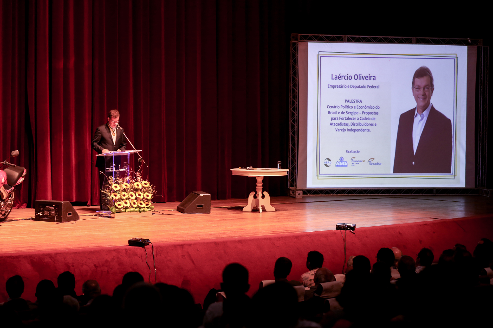 Em sua palestra para os 900 empresários presentes no Teatro Tobias Barreto, Laércio Oliveira falou sobre o cenário político nacional na atualidade, com os problemas enfrentados pela classe política, que culminaram com a mudança de governo, resultado do afastamento da presidente Dilma Rousseff e da assunção de Michel Temer à presidência da república.