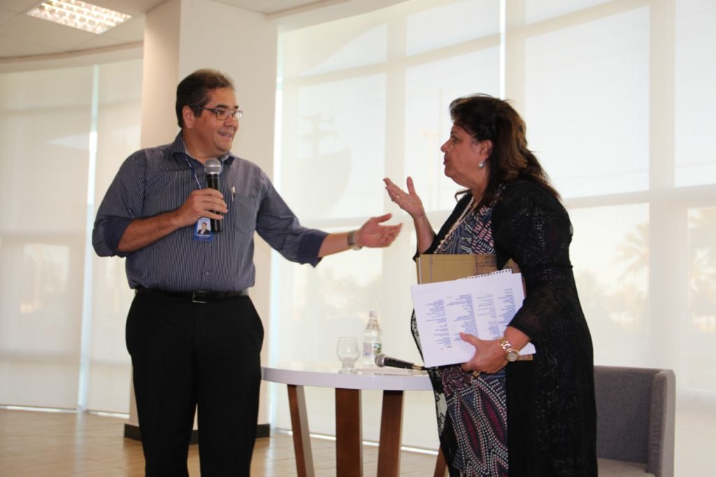 Ao final de sua palestra, Luíza Trajano foi presenteada pelo superintendente da Fecomércio, Maurício Gonçalves, com um exemplar do livro comemorativo dos 70 anos da Federação do Comércio, “Comércio em Sergipe, História e Histórias”, que conta a história contemporânea da atividade comercial em Sergipe.
