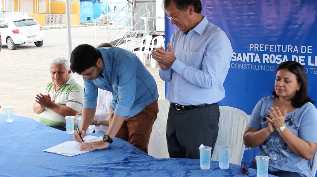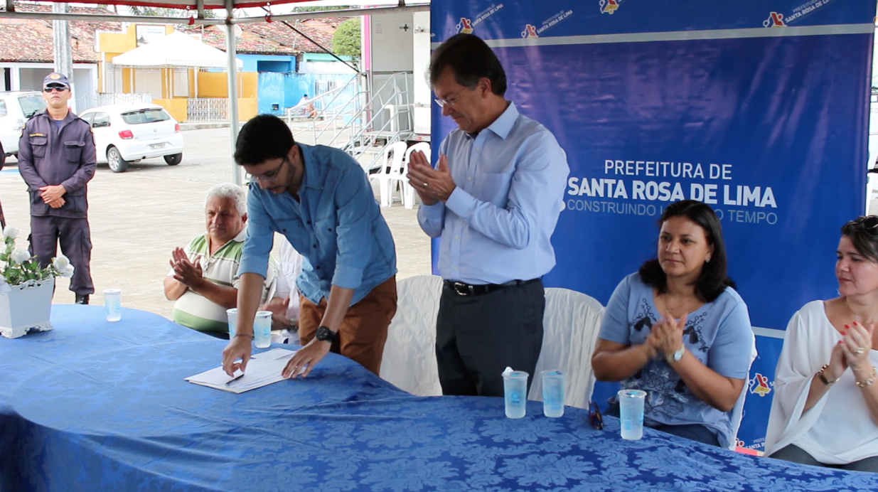 A assinatura do convênio entre a prefeitura Municipal de Santa Rosa de Lima e o Sistema Fecomércio foi feita pelo prefeito da cidade, Luiz Roberto Júnior e pelo presidente do sistema, Laércio Oliveira, que valorizou a oportunidade em poder realizar o serviço na cidade.