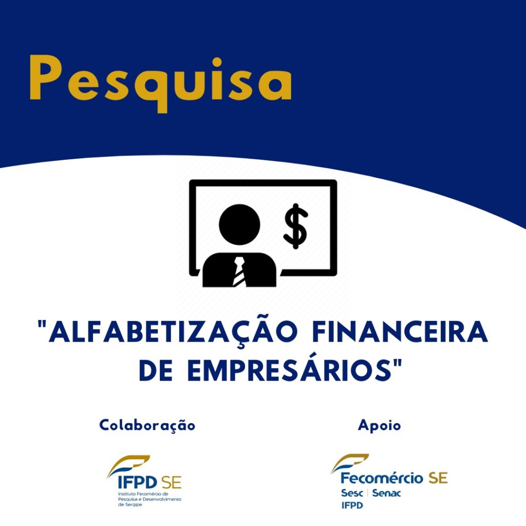 O Instituto Fecomércio de Pesquisa e Desenvolvimento de Sergipe (IFPD) convida o empresariado sergipano a responder o formulário do projeto de pesquisa da Universidade Presbiteriana Mackenzie/SP, “Alfabetização Financeira de Empresários”, desenvolvido pelo Prof. Denis Forte (Mackenzie),em parceria com a Profª do Departamento de Administração da Universidade Federal de Sergipe (UFS)/Campus de Itabaiana, Ivanilda Silva. A proposta da pesquisa é traçar o perfil de micros e pequenos empresários e MEIs do setor do comércio sobre o aspecto da alfabetização financeira pessoal e empresarial.