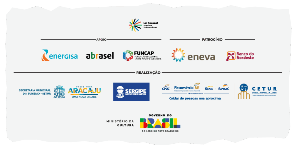 A Semana da Sergipanidade é uma realização do Sistema Fecomércio-Sesc-Senac, através do Conselho Empresarial de Turismo – Cetur, em parceria com a Prefeitura de Aracaju, Governo do Estado de Sergipe e Ministério da Cultura, prefeituras dos municípios participantes. Com apoio da Abrasel, Energisa e Funcap, e conta com o patrocínio da Eneva e do Banco do Nordeste — Governo do Brasil.