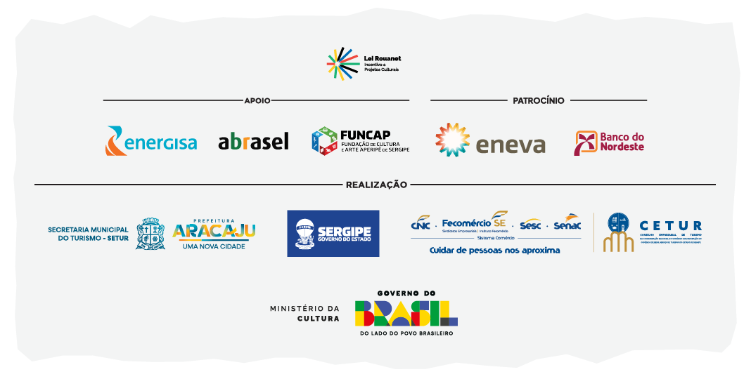 A Semana da Sergipanidade é uma realização do Sistema Fecomércio-Sesc-Senac, através do Conselho Empresarial de Turismo – Cetur, em parceria com a Prefeitura de Aracaju, Governo do Estado de Sergipe e Ministério da Cultura, prefeituras dos municípios participantes. Com apoio da Abrasel, Energisa e Funcap, e conta com o patrocínio da Eneva e do Banco do Nordeste — Governo do Brasil.