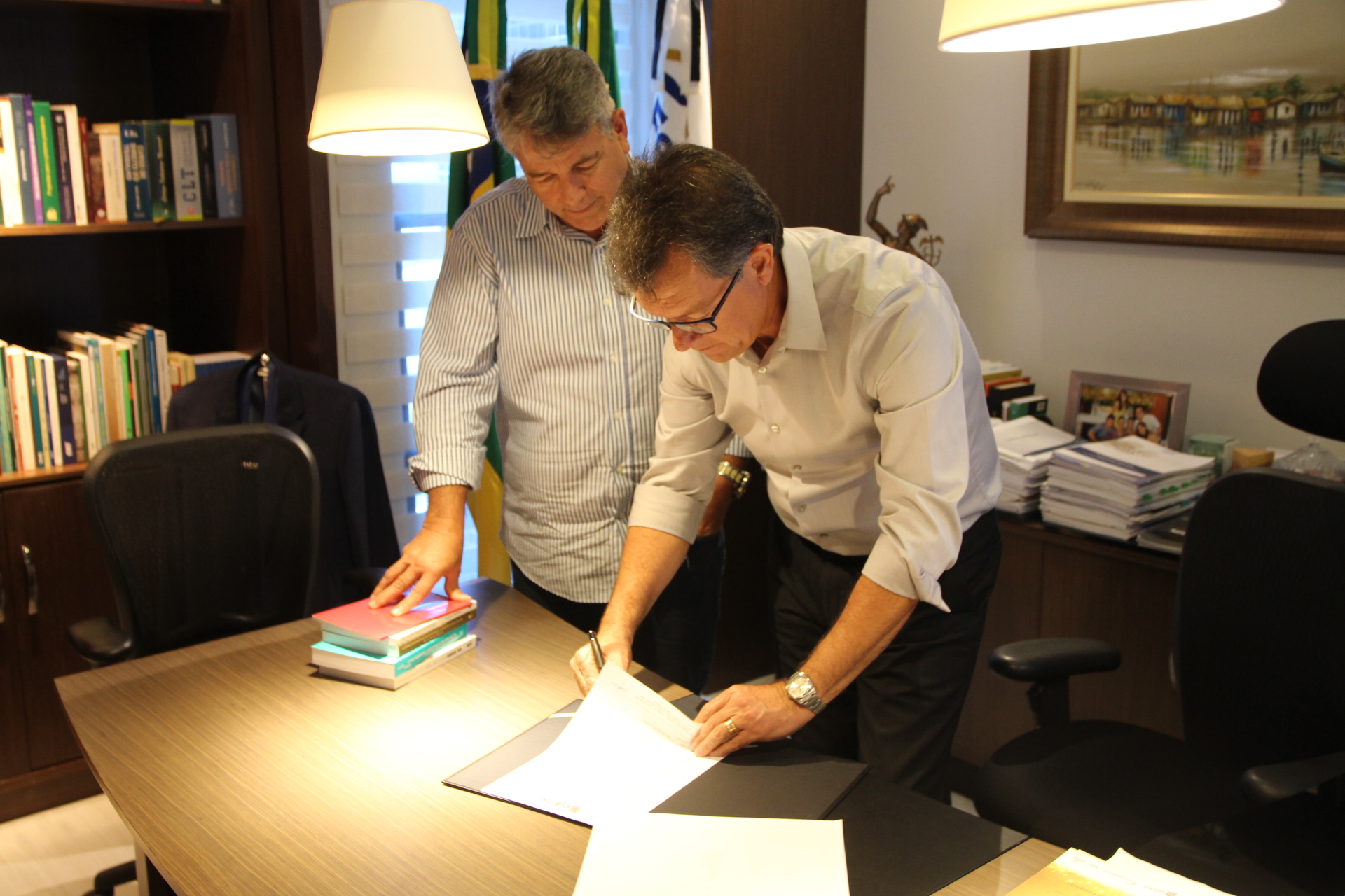 Foi assinado na manhã desta segunda-feira (27), um convênio entre o Sistema Fecomércio-Sesc e a autarquia estadual Serviços Gráficos de Sergipe (Segrase), o qual celebra uma parceria entre as instituições para o desenvolvimento da leitura de autores sergipanos pelo público frequentador do Serviço Social do Comércio. A assinatura foi firmada pelo presidente da Fecomércio, Laércio Oliveira, e pelo presidente da Segrase, Ricardo Roriz.